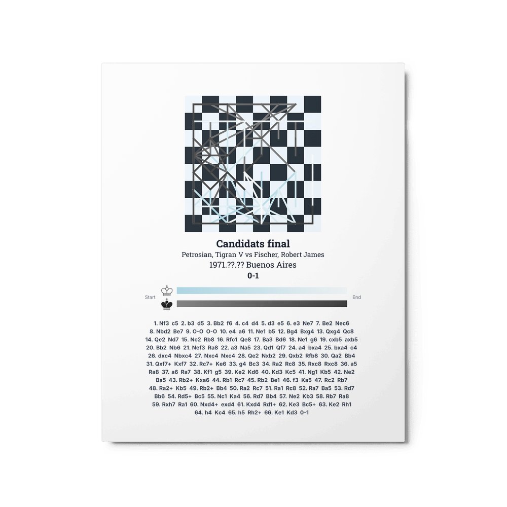 1971. The Candidates Final that decided who would challenge Spassky. Petrosian's defensive genius against Fischer's relentless attacking style — two fundamentally different chess philosophies in collision.