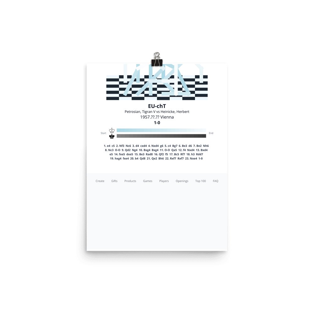 Museum-quality poster on thick, durable matte paper. A sharp, clean look for any chess visualisation.