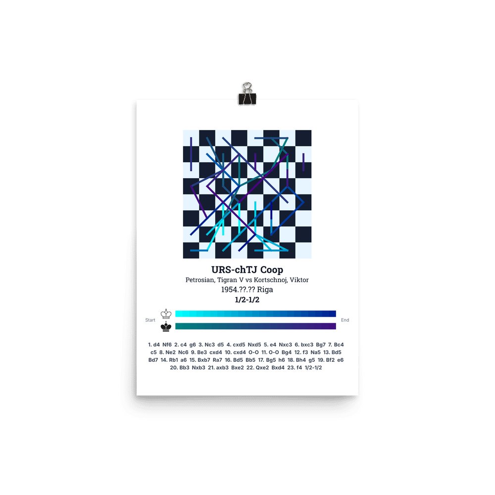 Museum-quality poster on thick, durable matte paper. A sharp, clean look for any chess visualisation.