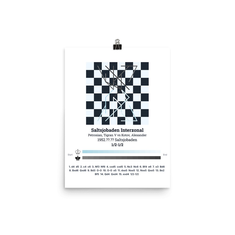Museum-quality poster on thick, durable matte paper. A sharp, clean look for any chess visualisation.