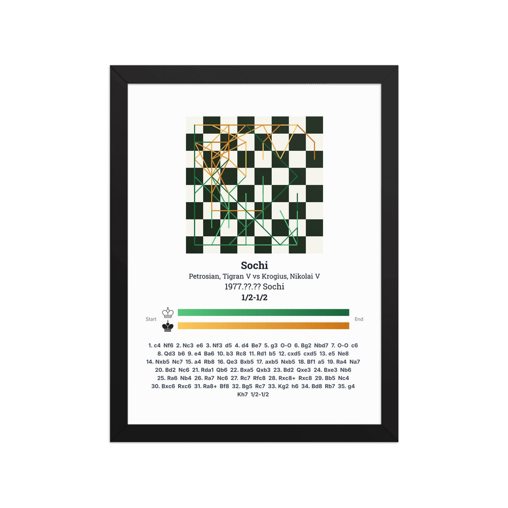 Museum-quality poster on thick, durable matte paper. A sharp, clean look for any chess visualisation.