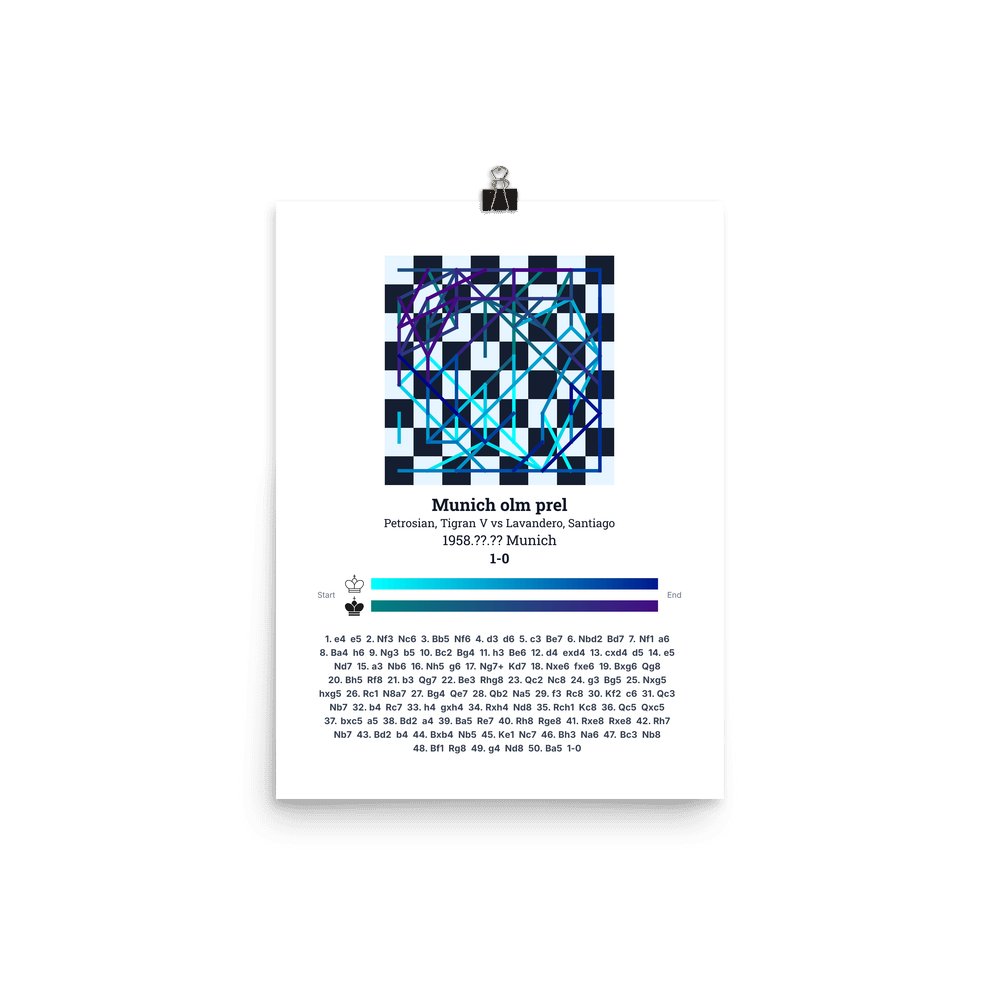 Museum-quality poster on thick, durable matte paper. A sharp, clean look for any chess visualisation.