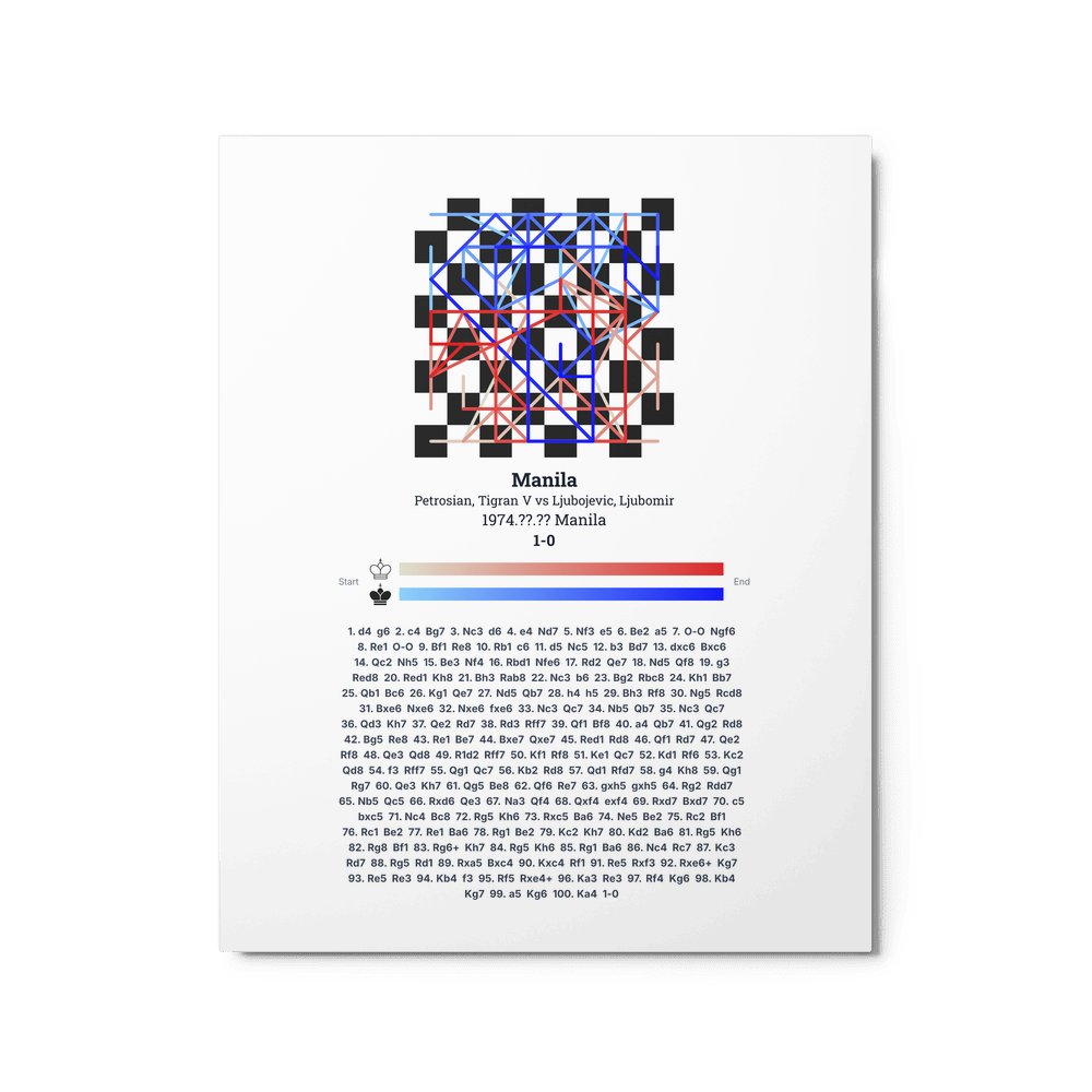 Museum-quality poster on thick, durable matte paper. A sharp, clean look for any chess visualisation.