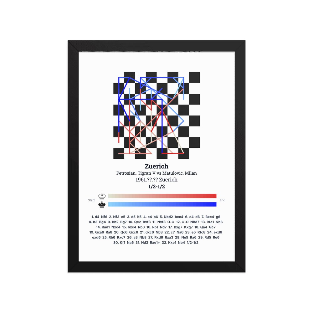 Museum-quality poster on thick, durable matte paper. A sharp, clean look for any chess visualisation.