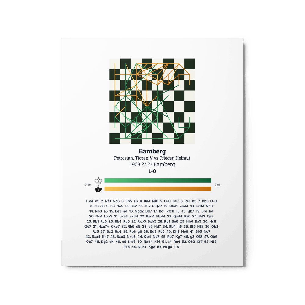 Museum-quality poster on thick, durable matte paper. A sharp, clean look for any chess visualisation.