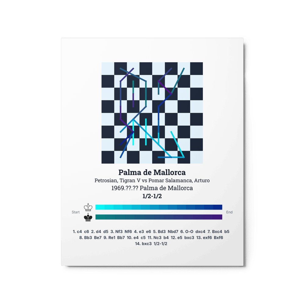 Museum-quality poster on thick, durable matte paper. A sharp, clean look for any chess visualisation.