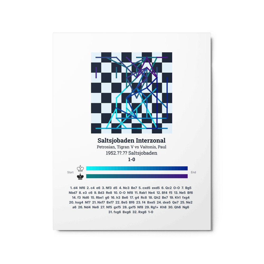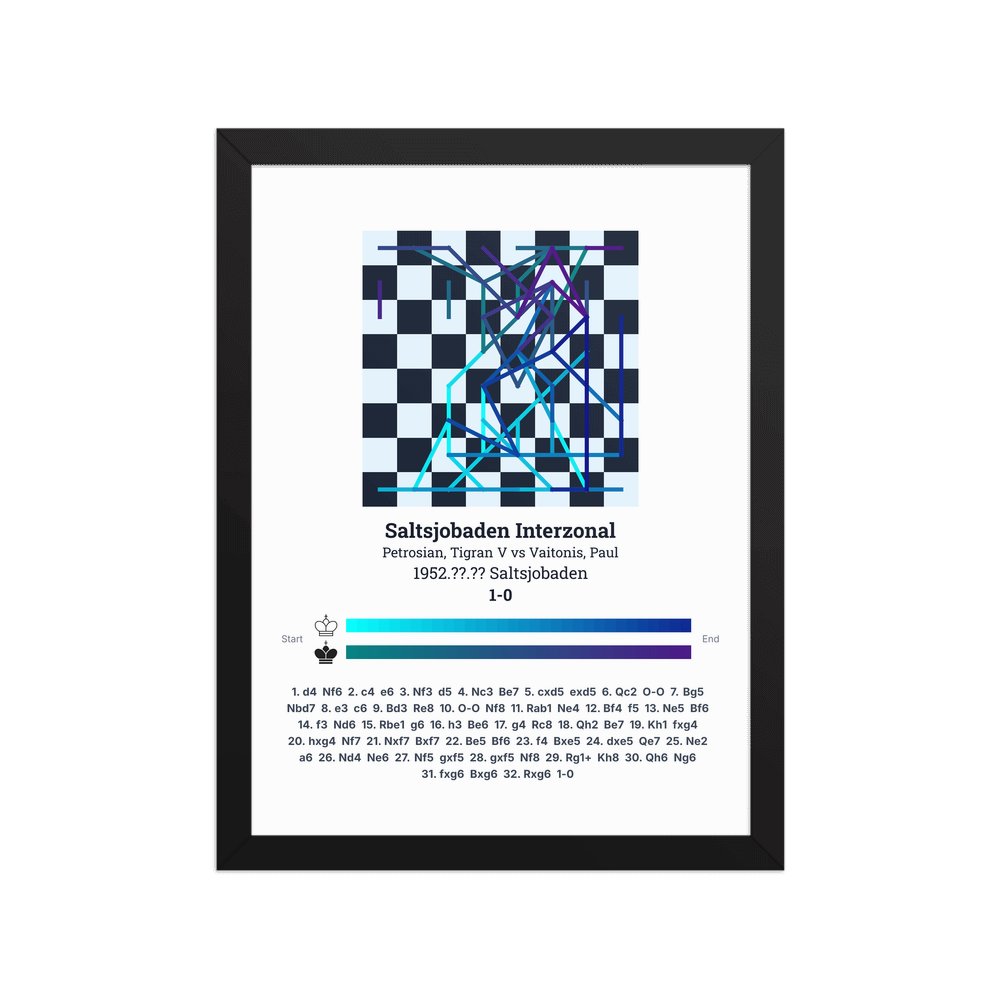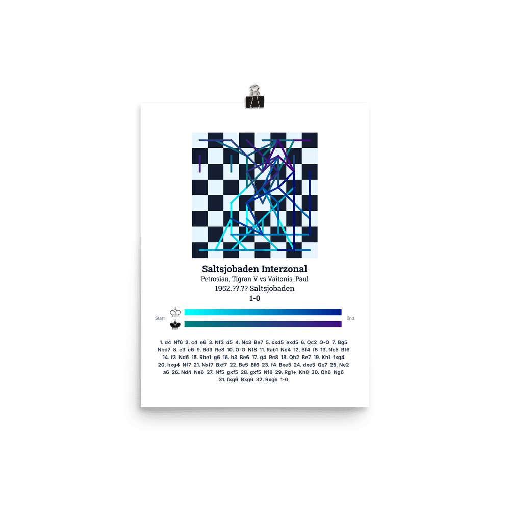 Museum-quality poster on thick, durable matte paper. A sharp, clean look for any chess visualisation.