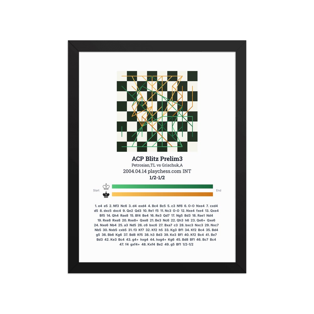 Museum-quality poster on thick, durable matte paper. A sharp, clean look for any chess visualisation.
