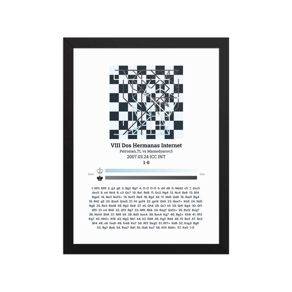 Museum-quality poster on thick, durable matte paper. A sharp, clean look for any chess visualisation.