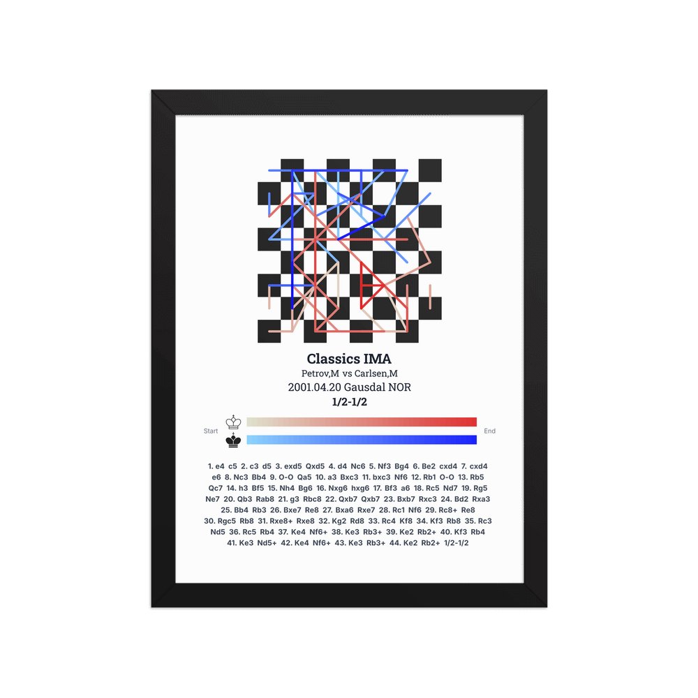Museum-quality poster on thick, durable matte paper. A sharp, clean look for any chess visualisation.