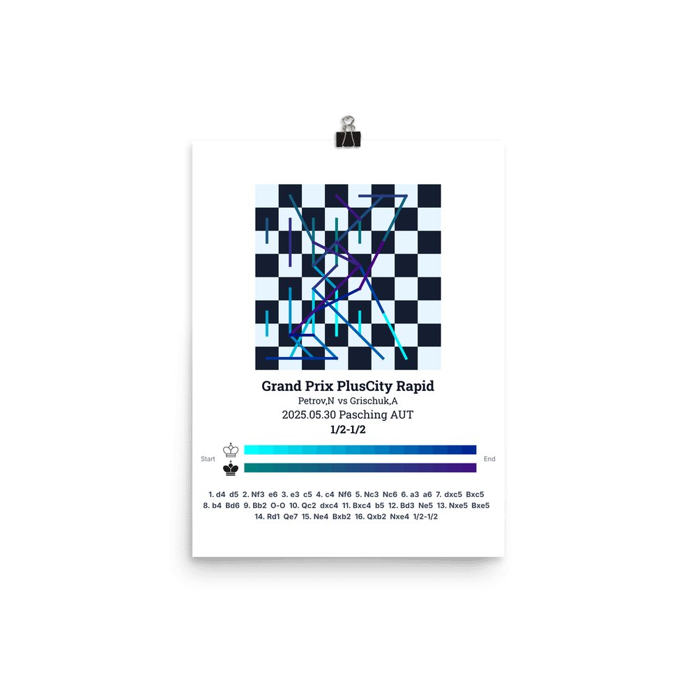 Museum-quality poster on thick, durable matte paper. A sharp, clean look for any chess visualisation.