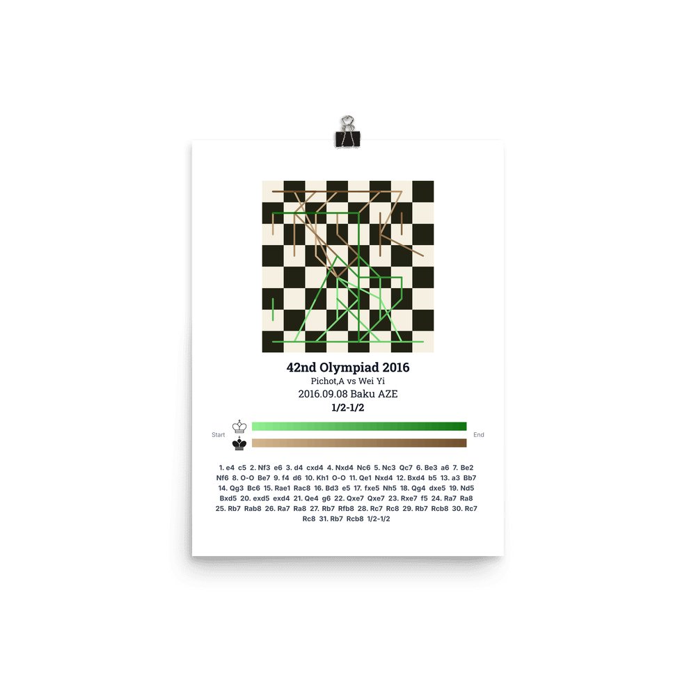 Museum-quality poster on thick, durable matte paper. A sharp, clean look for any chess visualisation.