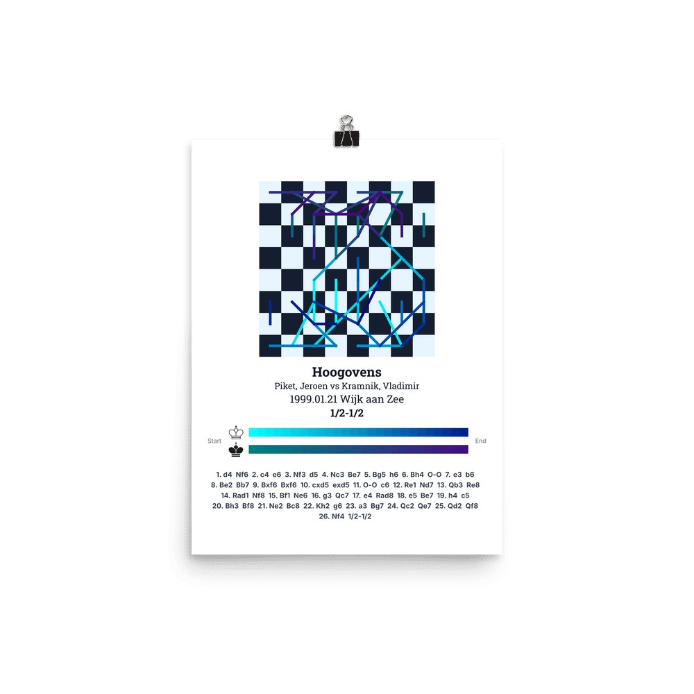 Museum-quality poster on thick, durable matte paper. A sharp, clean look for any chess visualisation.