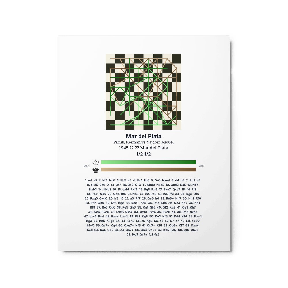 Museum-quality poster on thick, durable matte paper. A sharp, clean look for any chess visualisation.
