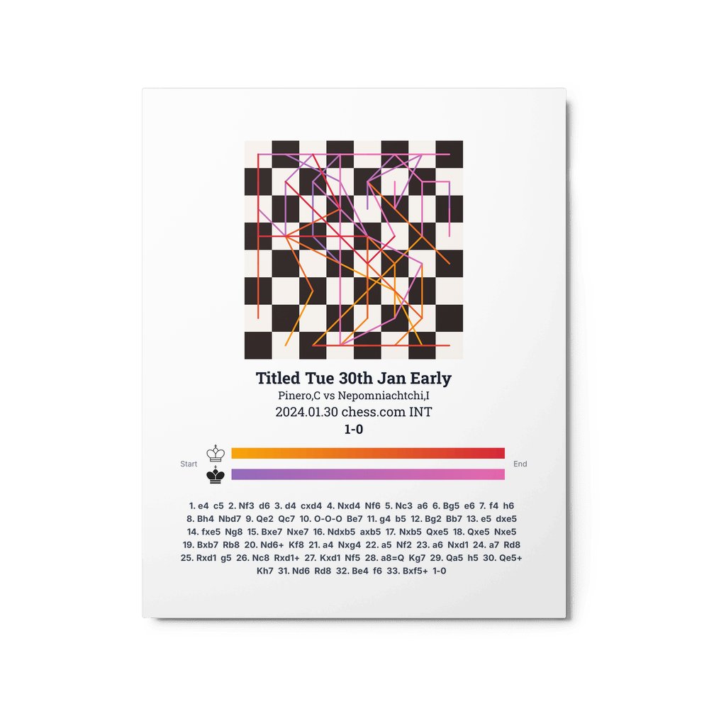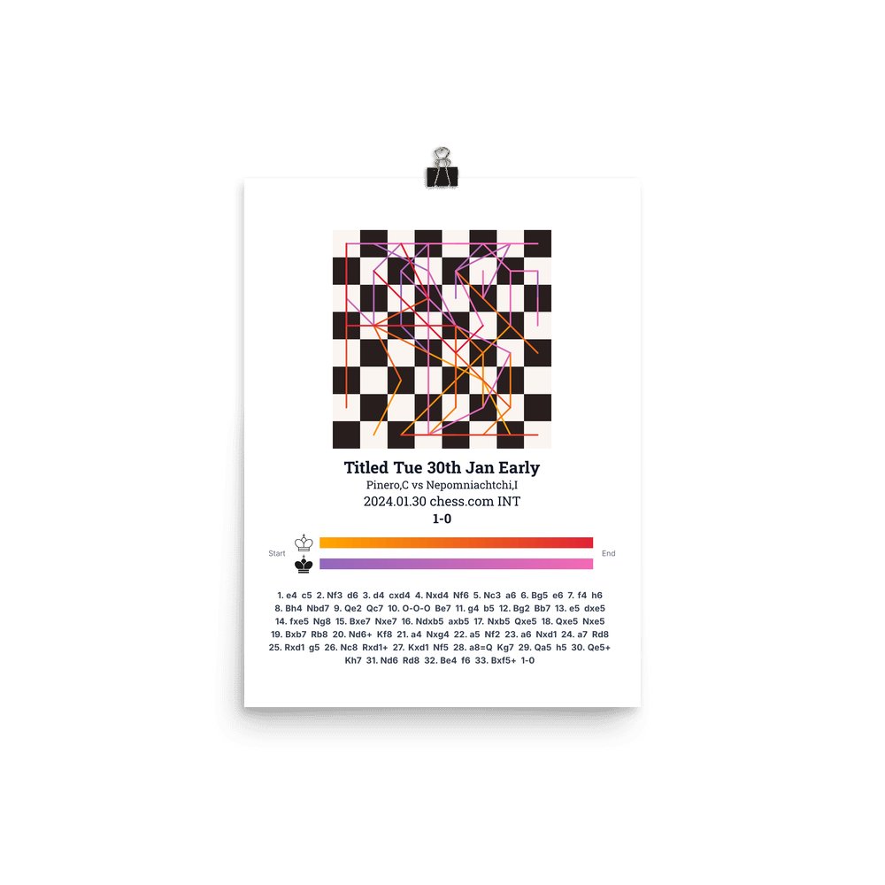 Museum-quality poster on thick, durable matte paper. A sharp, clean look for any chess visualisation.