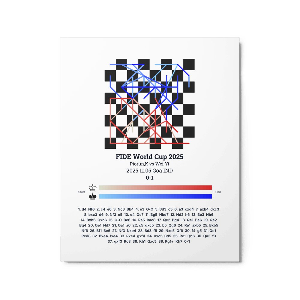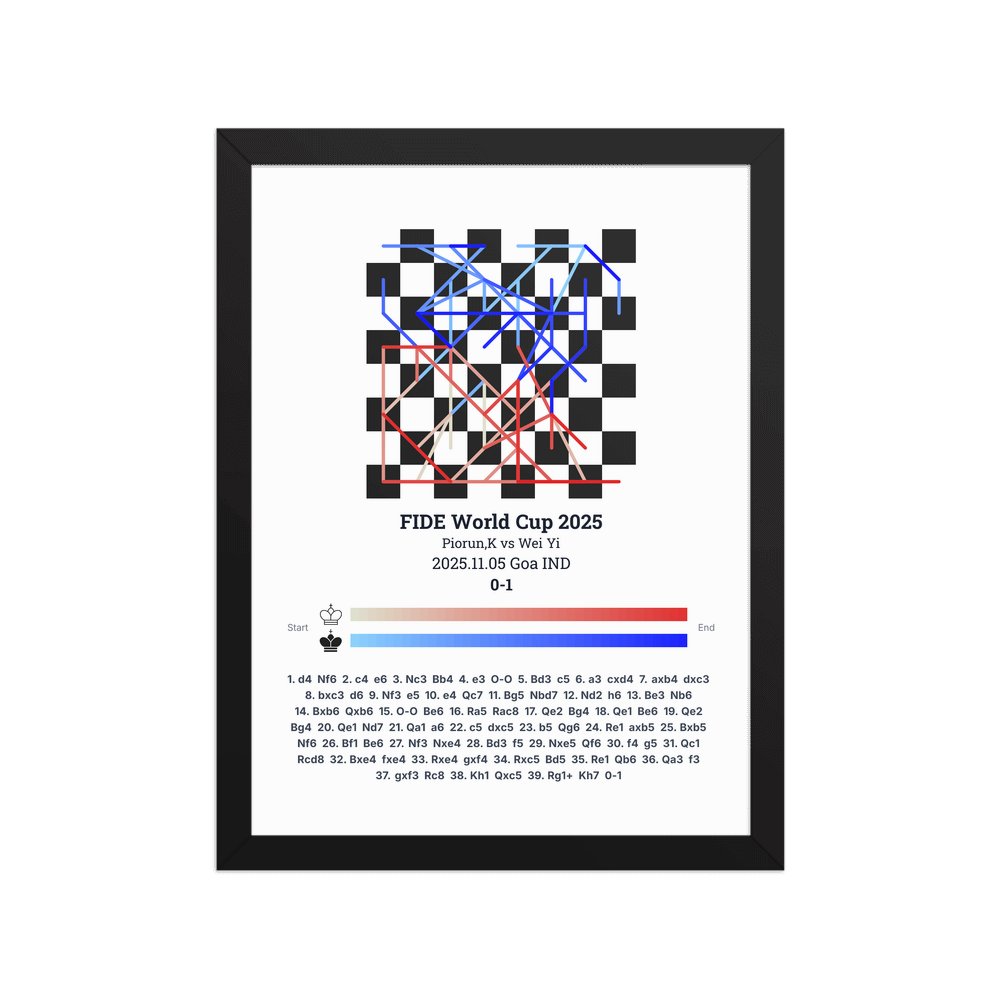 Museum-quality poster on thick, durable matte paper. A sharp, clean look for any chess visualisation.