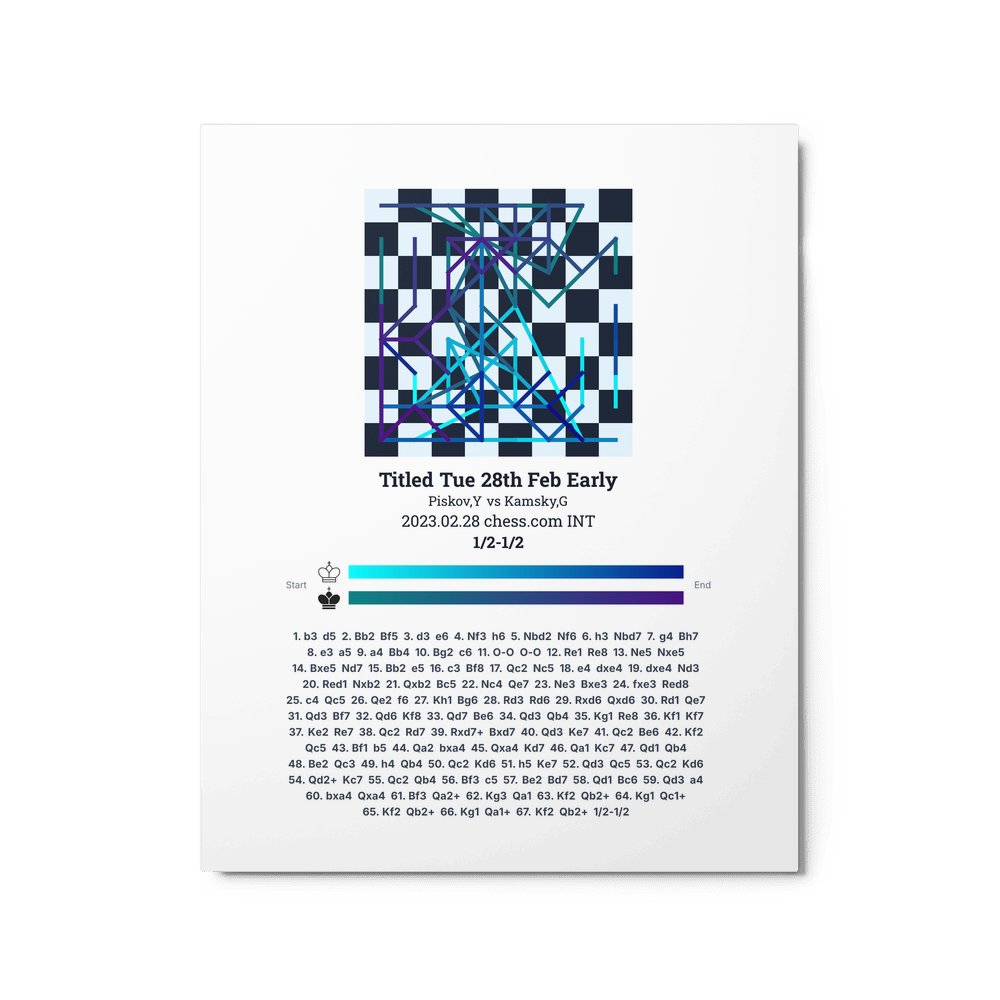 Museum-quality poster on thick, durable matte paper. A sharp, clean look for any chess visualisation.