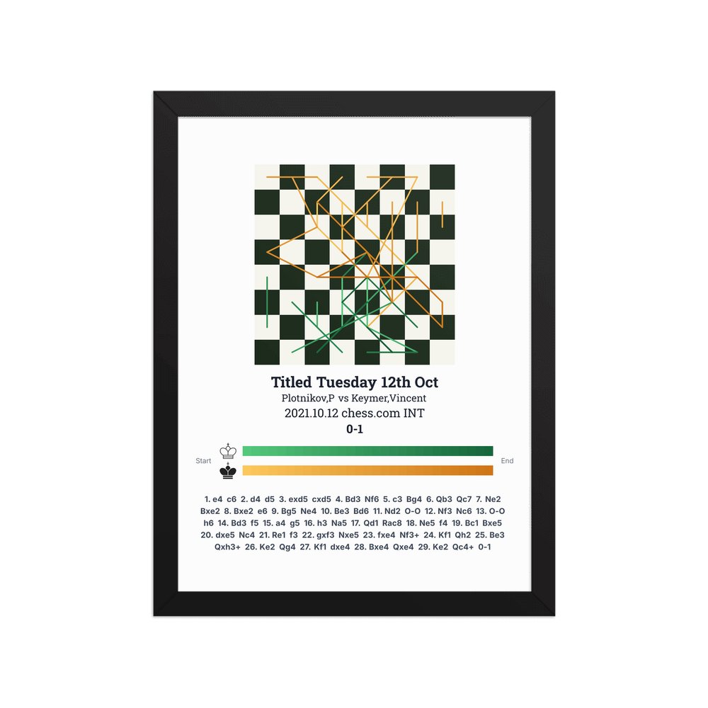 Museum-quality poster on thick, durable matte paper. A sharp, clean look for any chess visualisation.