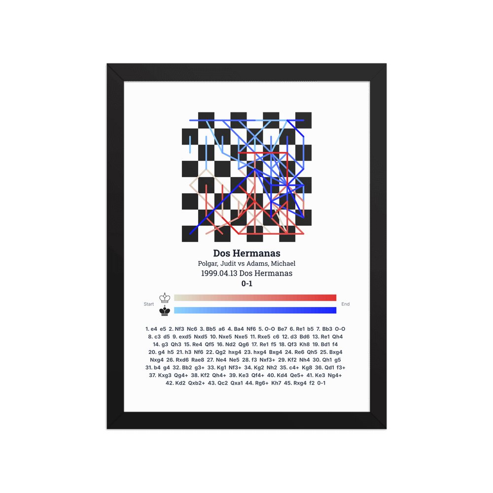 Museum-quality poster on thick, durable matte paper. A sharp, clean look for any chess visualisation.