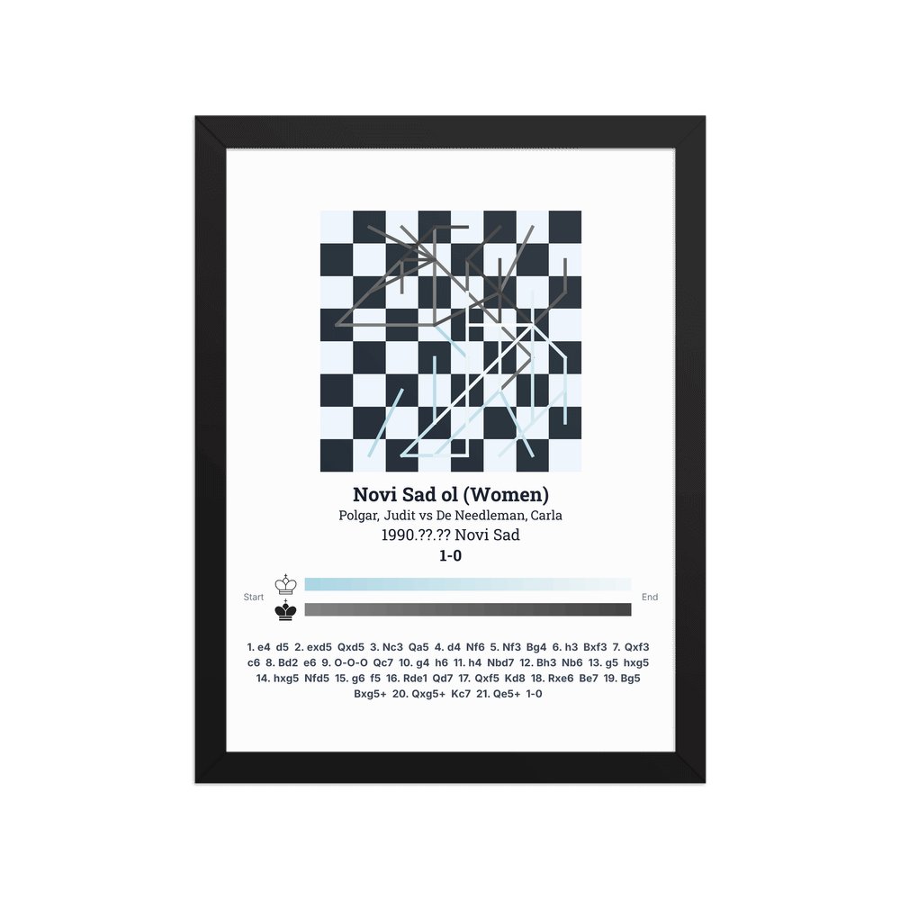Museum-quality poster on thick, durable matte paper. A sharp, clean look for any chess visualisation.