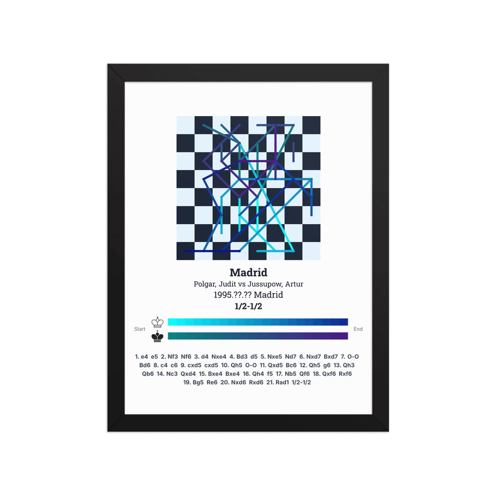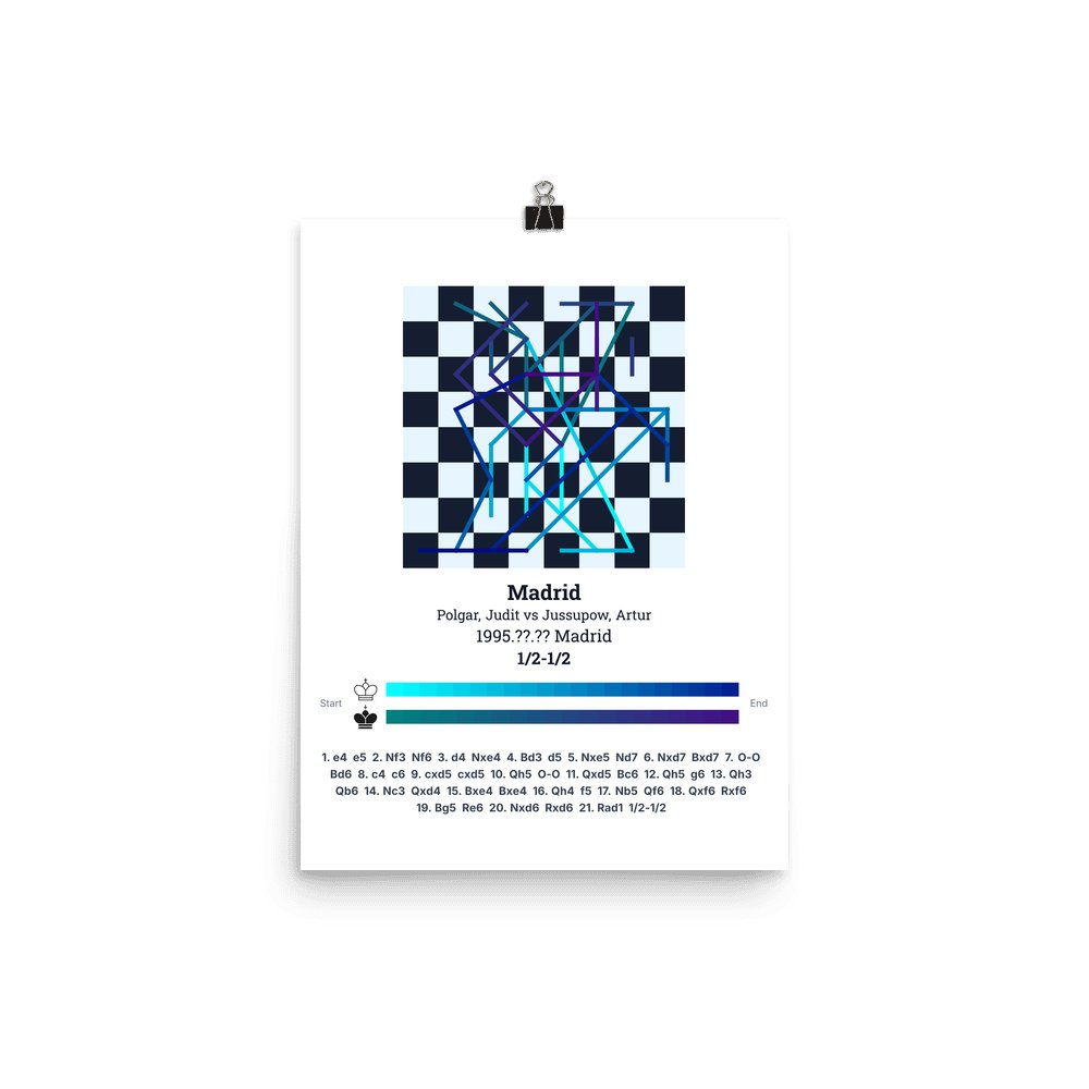 Museum-quality poster on thick, durable matte paper. A sharp, clean look for any chess visualisation.