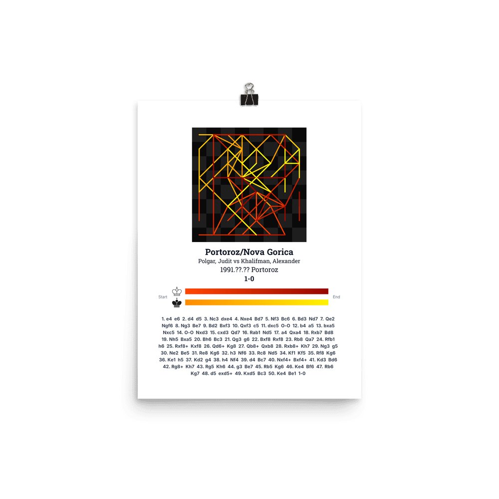 Museum-quality poster on thick, durable matte paper. A sharp, clean look for any chess visualisation.