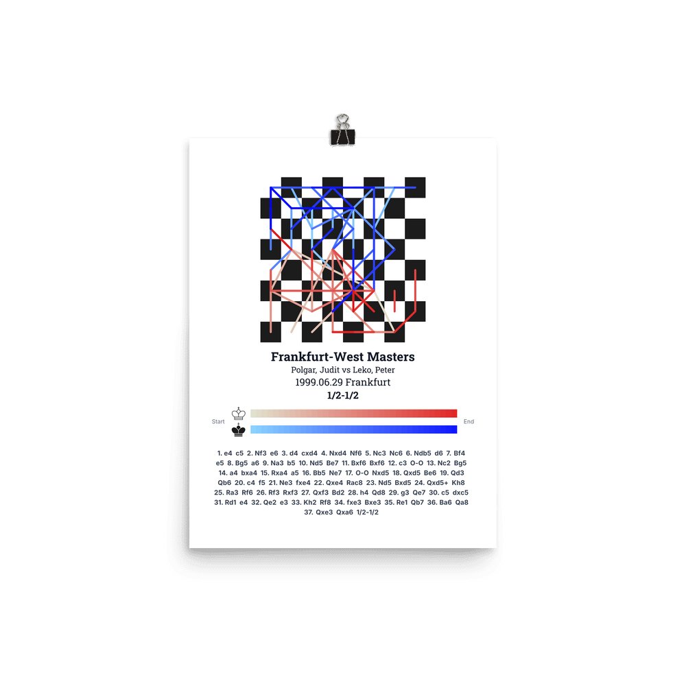 Museum-quality poster on thick, durable matte paper. A sharp, clean look for any chess visualisation.