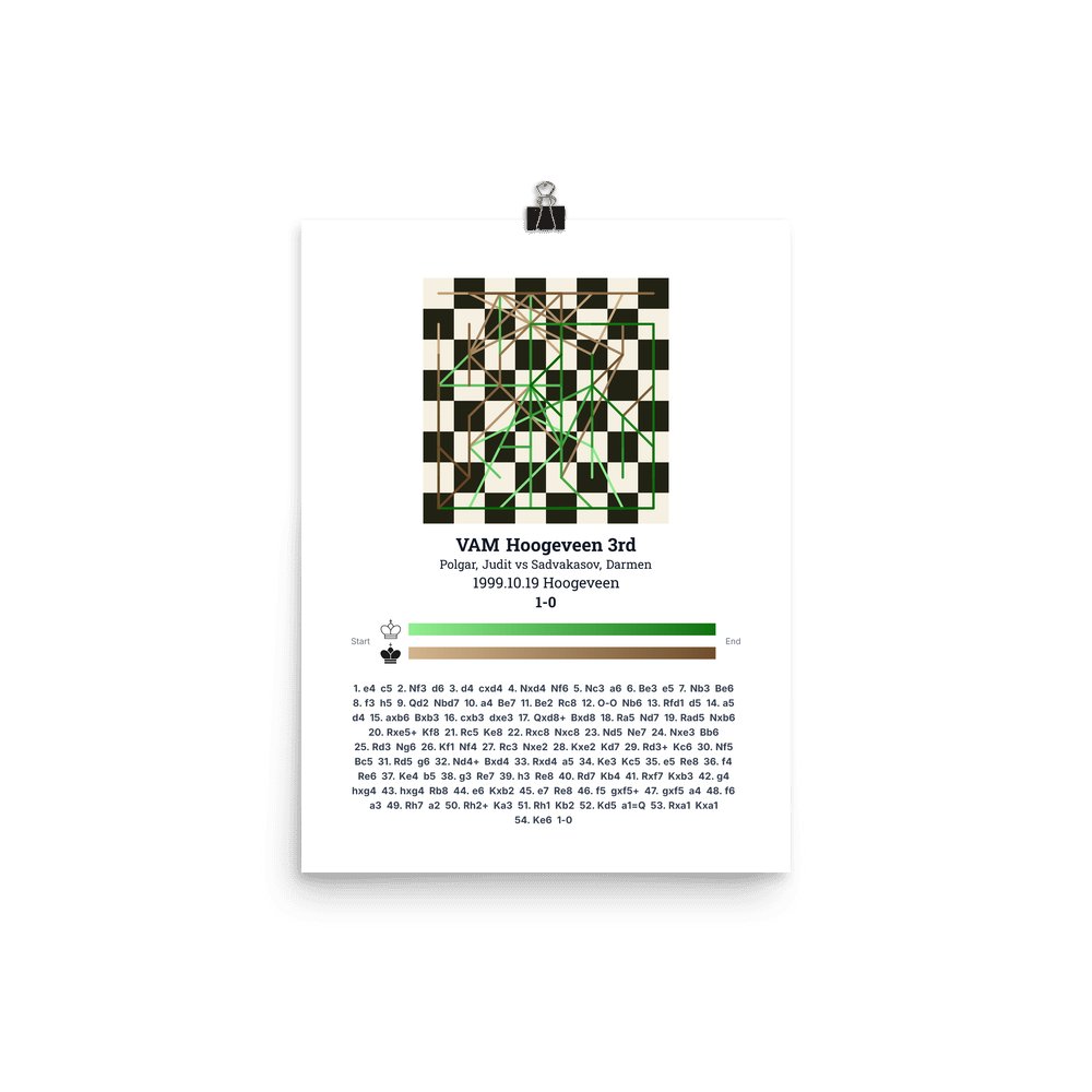 Museum-quality poster on thick, durable matte paper. A sharp, clean look for any chess visualisation.