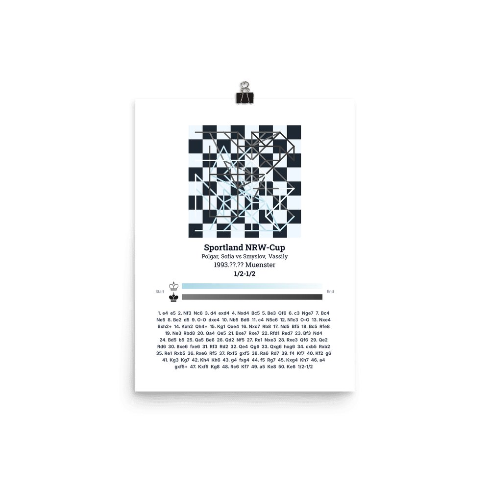 Museum-quality poster on thick, durable matte paper. A sharp, clean look for any chess visualisation.