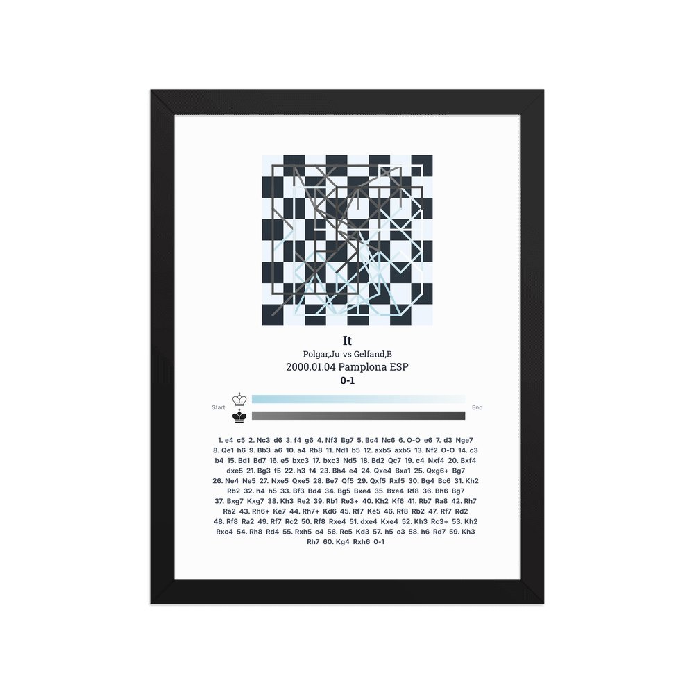 Museum-quality poster on thick, durable matte paper. A sharp, clean look for any chess visualisation.