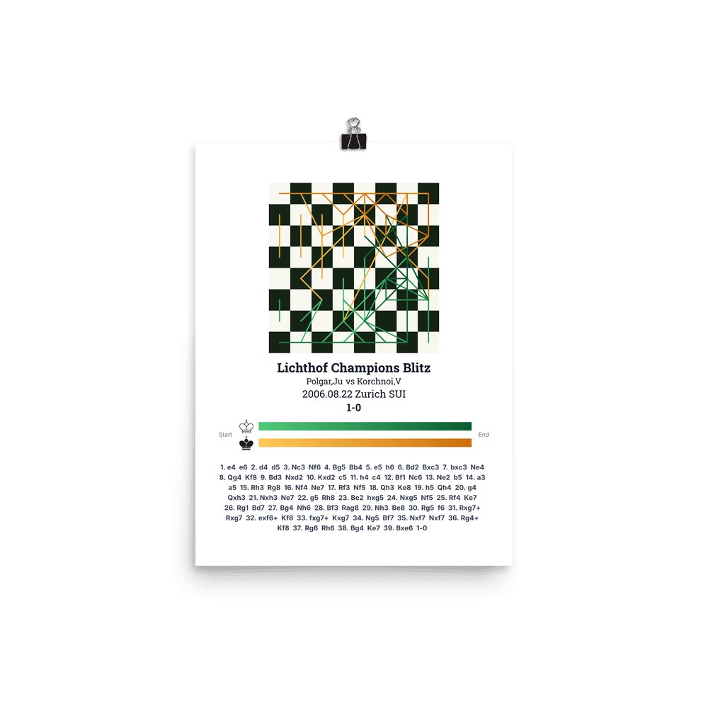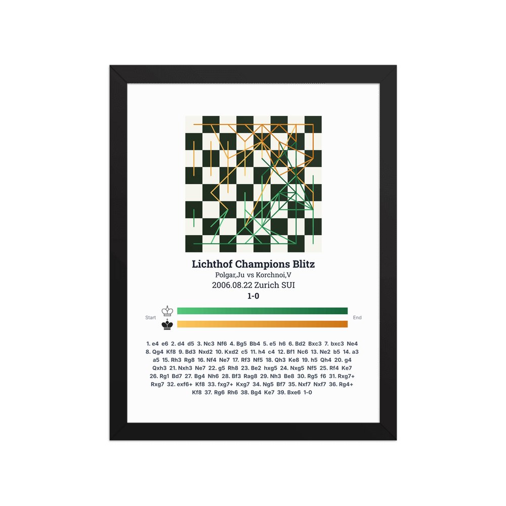 Museum-quality poster on thick, durable matte paper. A sharp, clean look for any chess visualisation.