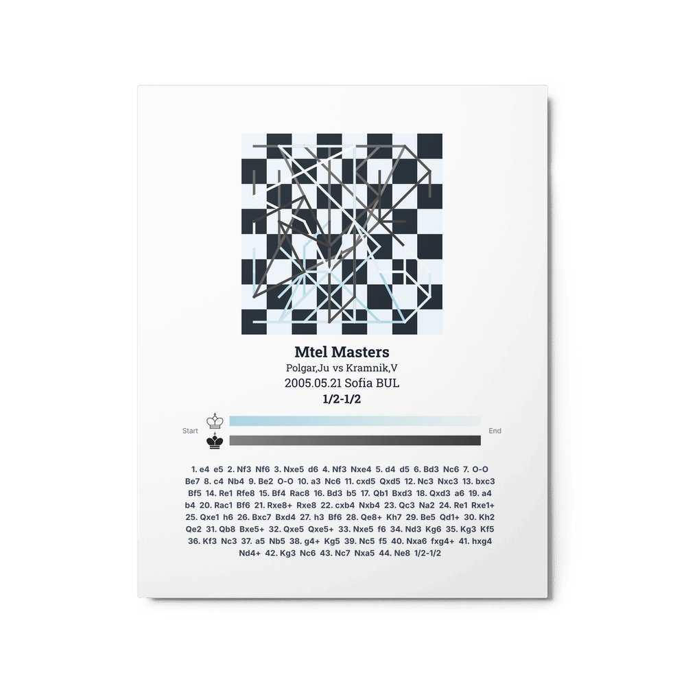 Museum-quality poster on thick, durable matte paper. A sharp, clean look for any chess visualisation.