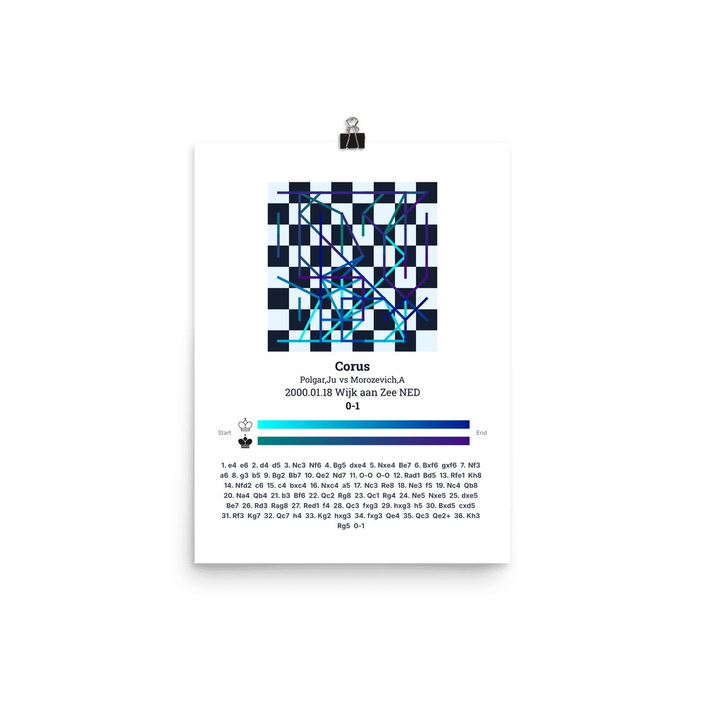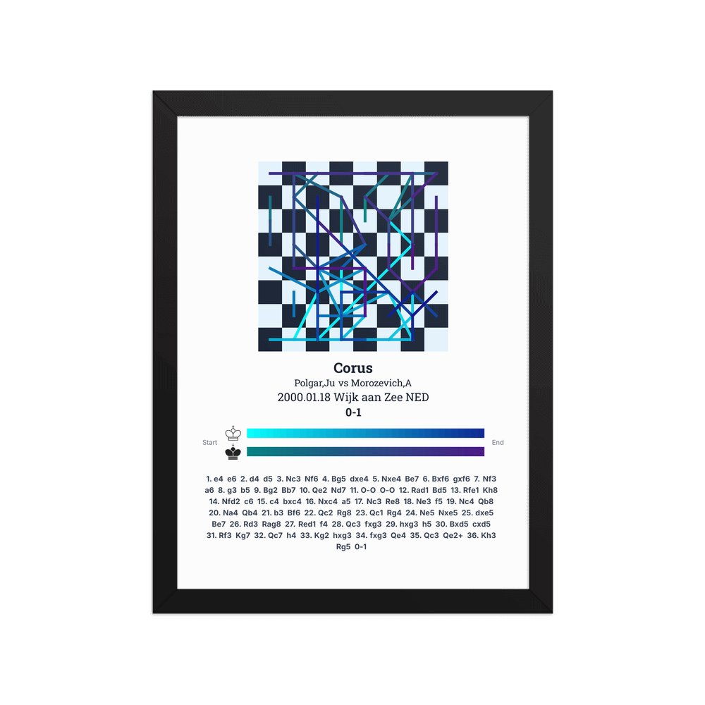 Museum-quality poster on thick, durable matte paper. A sharp, clean look for any chess visualisation.
