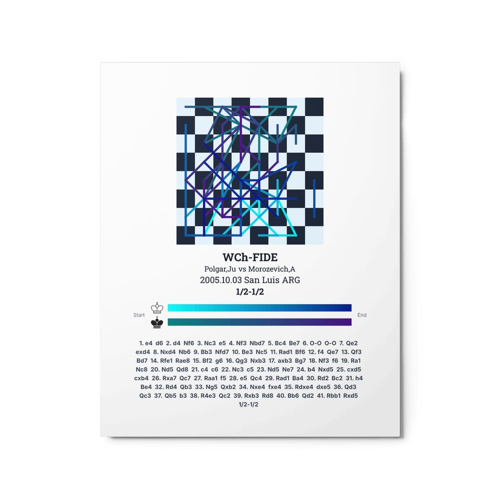 Museum-quality poster on thick, durable matte paper. A sharp, clean look for any chess visualisation.