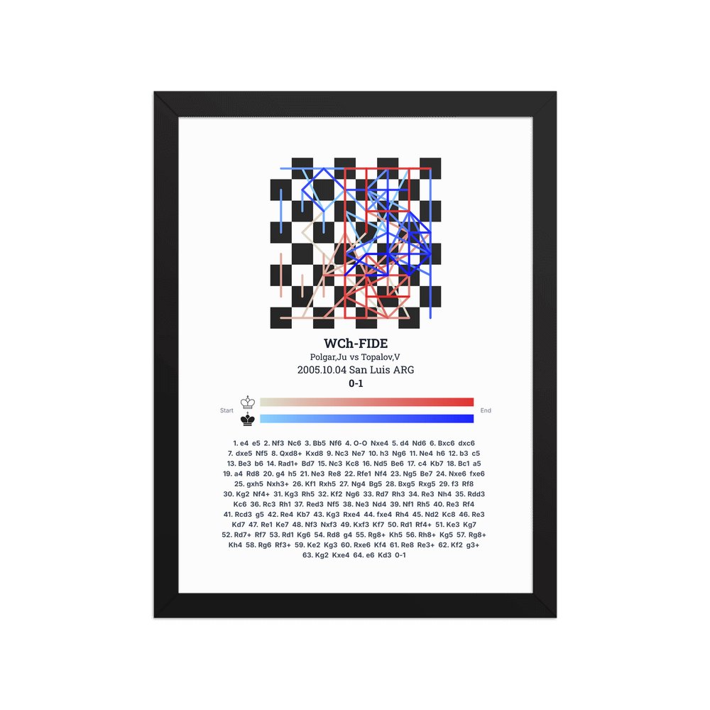 Museum-quality poster on thick, durable matte paper. A sharp, clean look for any chess visualisation.