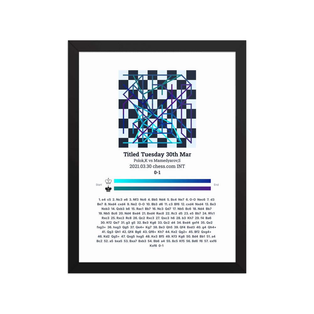 Museum-quality poster on thick, durable matte paper. A sharp, clean look for any chess visualisation.