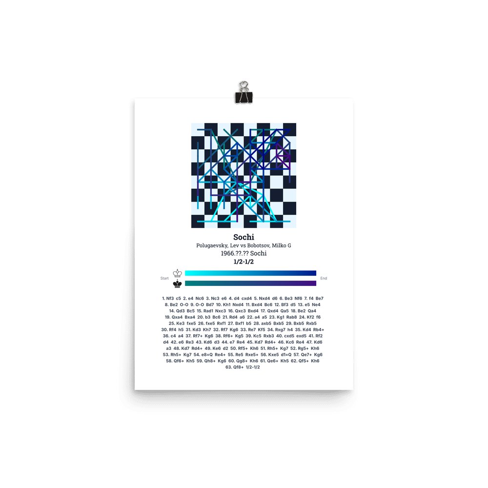 Museum-quality poster on thick, durable matte paper. A sharp, clean look for any chess visualisation.