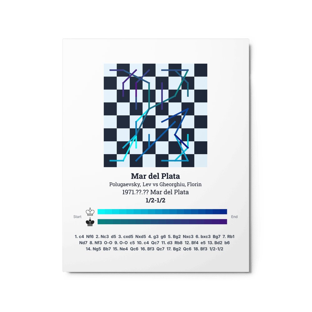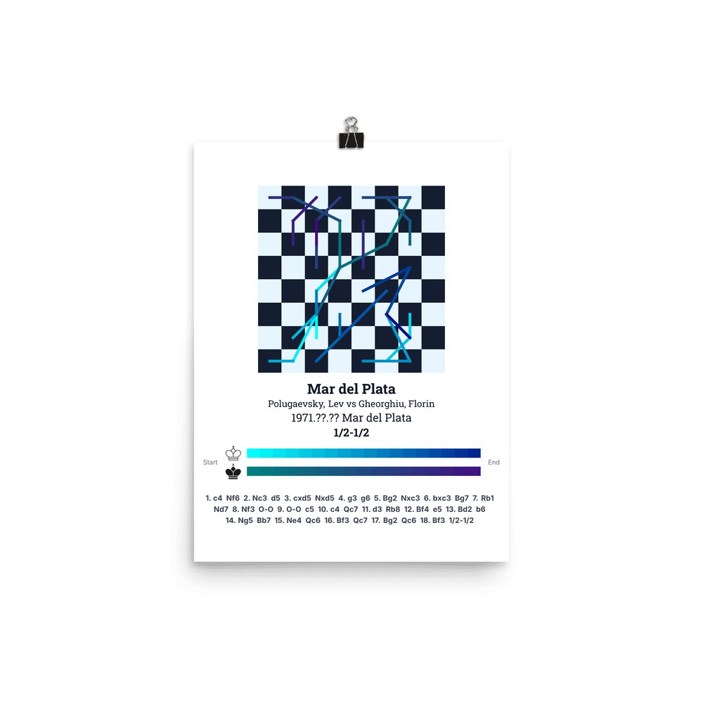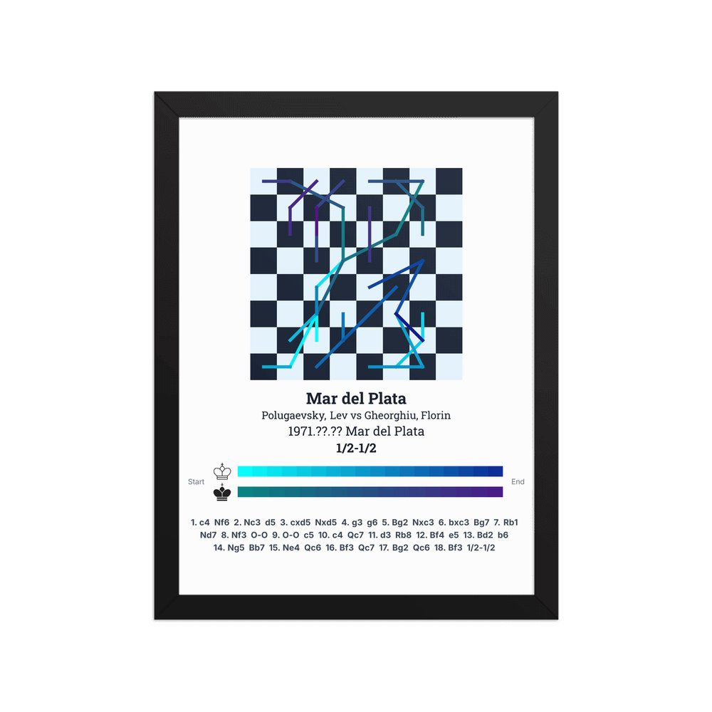 Museum-quality poster on thick, durable matte paper. A sharp, clean look for any chess visualisation.