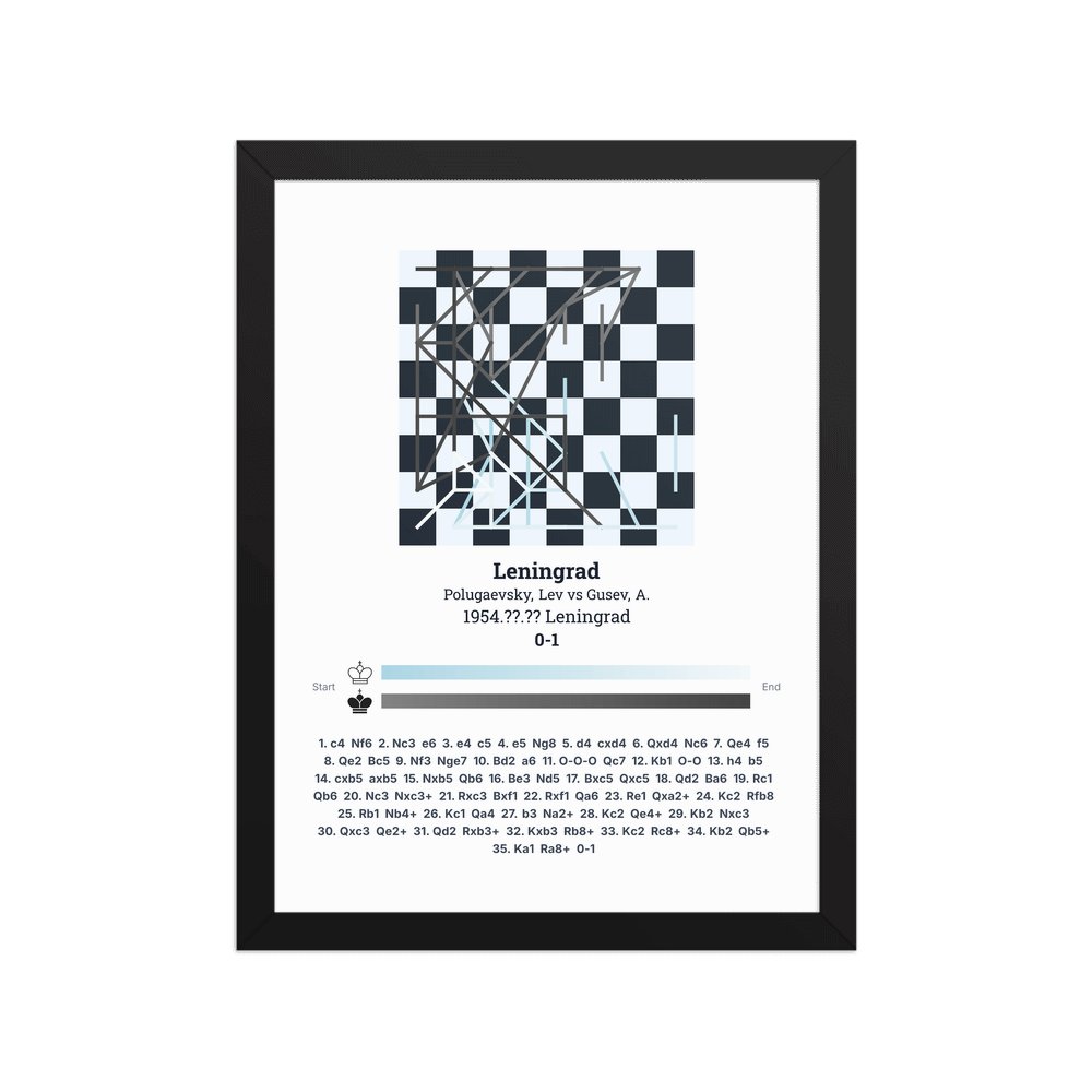 Museum-quality poster on thick, durable matte paper. A sharp, clean look for any chess visualisation.