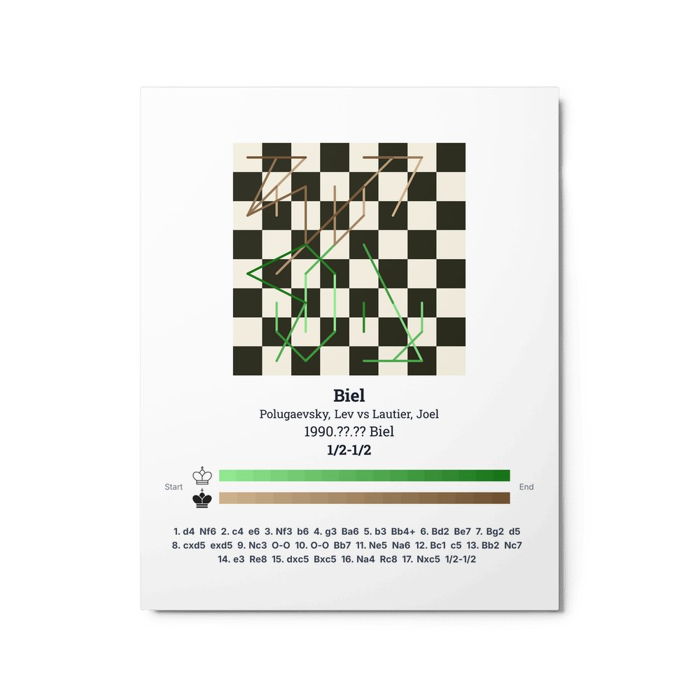 Museum-quality poster on thick, durable matte paper. A sharp, clean look for any chess visualisation.