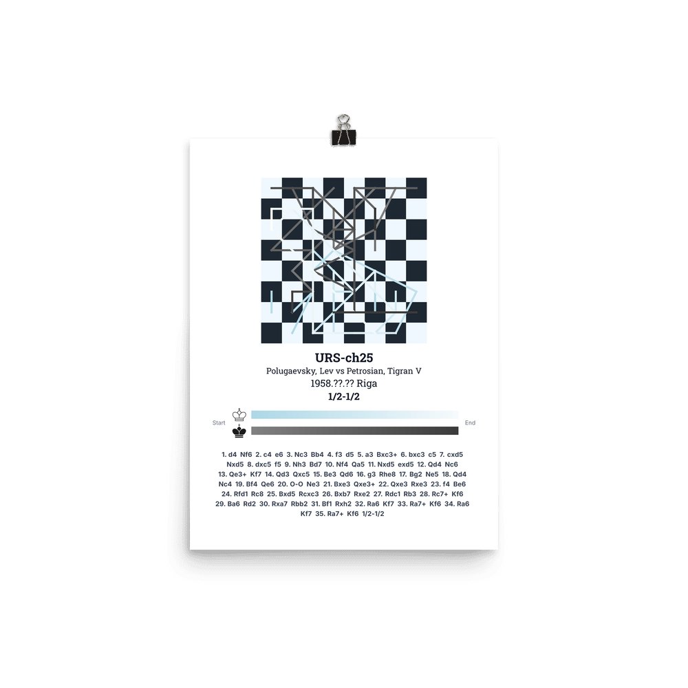 Museum-quality poster on thick, durable matte paper. A sharp, clean look for any chess visualisation.