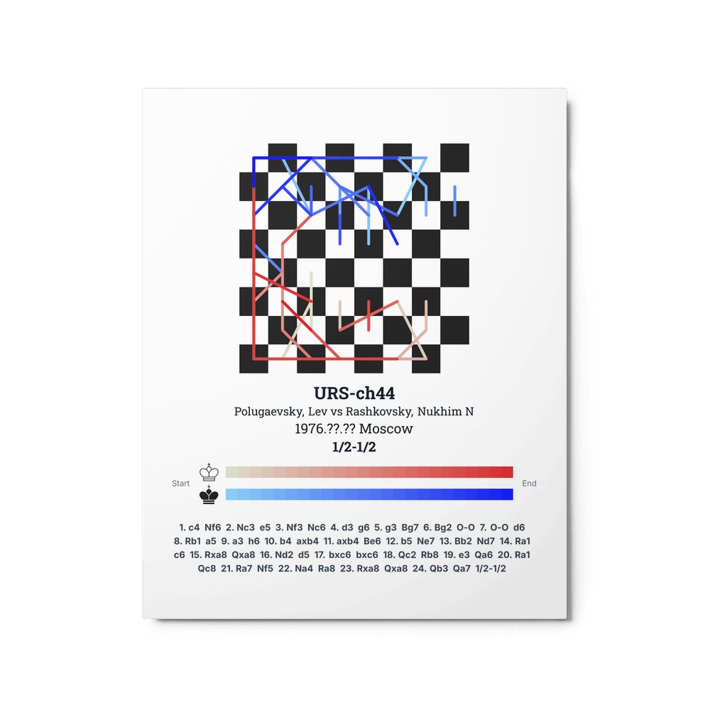 Museum-quality poster on thick, durable matte paper. A sharp, clean look for any chess visualisation.