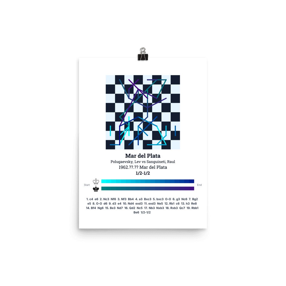 Museum-quality poster on thick, durable matte paper. A sharp, clean look for any chess visualisation.