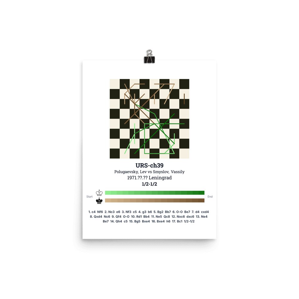 Museum-quality poster on thick, durable matte paper. A sharp, clean look for any chess visualisation.