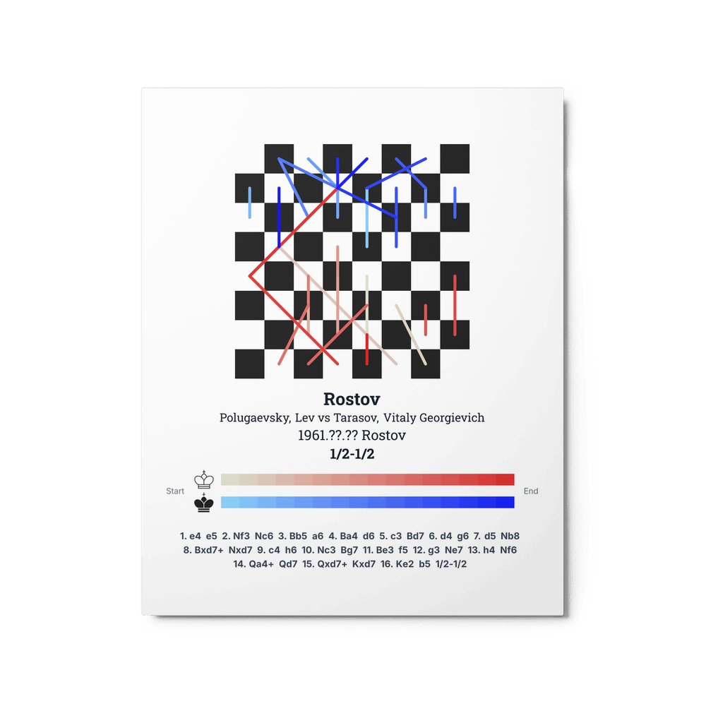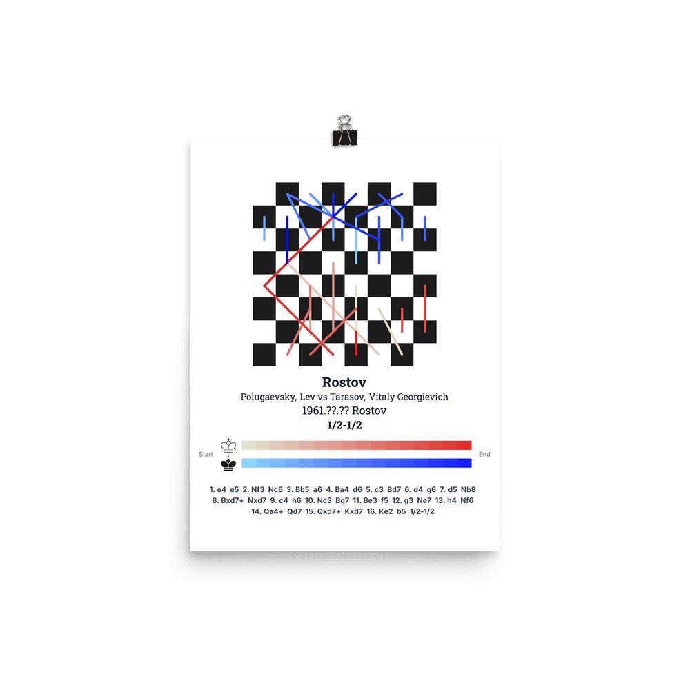Museum-quality poster on thick, durable matte paper. A sharp, clean look for any chess visualisation.