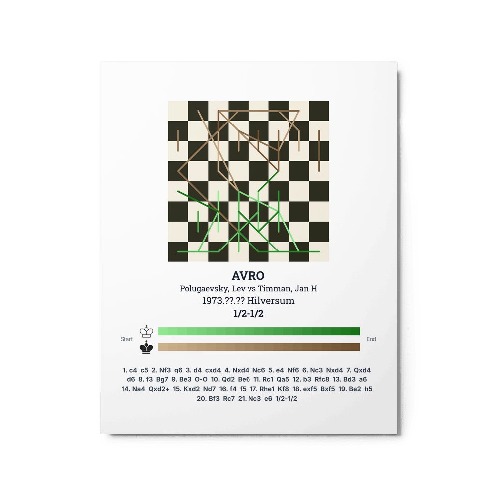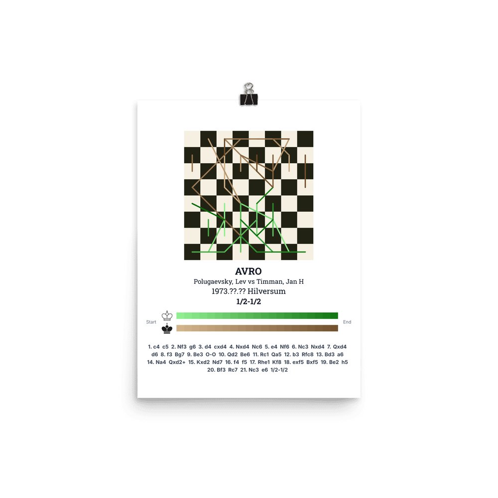 Museum-quality poster on thick, durable matte paper. A sharp, clean look for any chess visualisation.