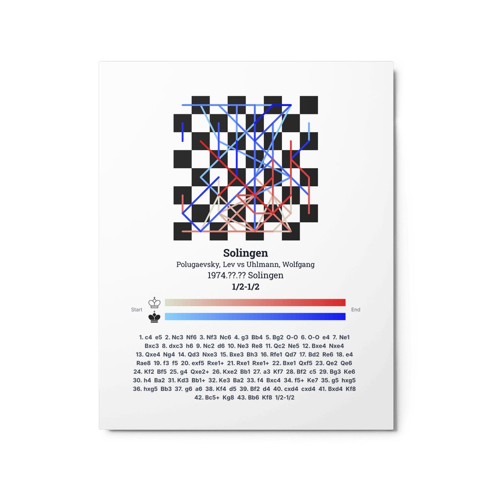 Museum-quality poster on thick, durable matte paper. A sharp, clean look for any chess visualisation.