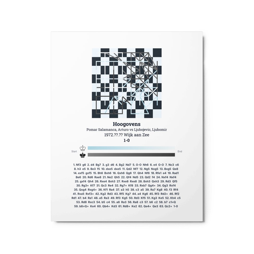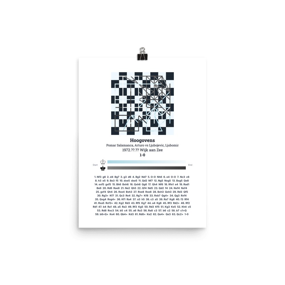 Museum-quality poster on thick, durable matte paper. A sharp, clean look for any chess visualisation.