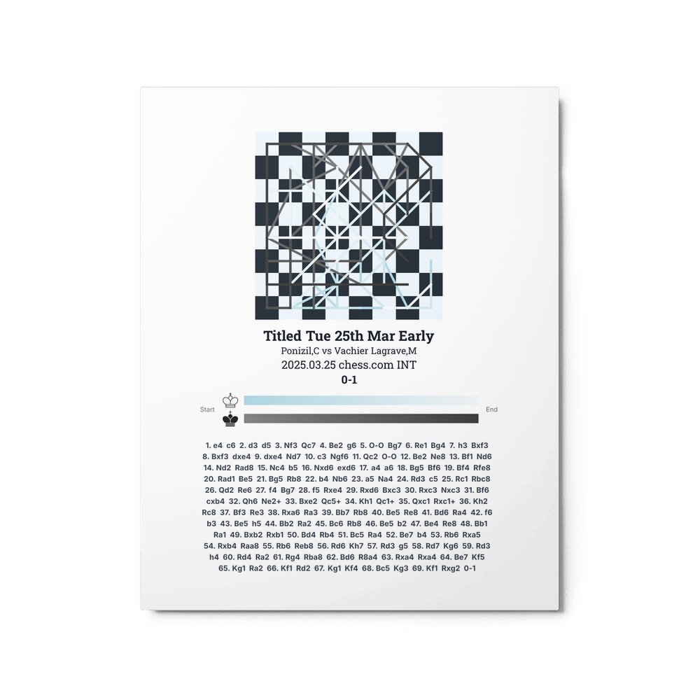 Museum-quality poster on thick, durable matte paper. A sharp, clean look for any chess visualisation.