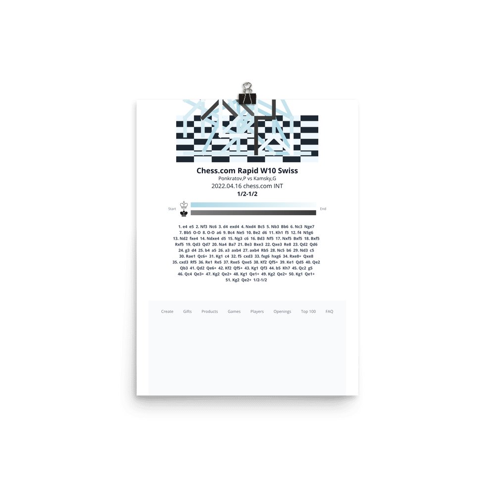 Museum-quality poster on thick, durable matte paper. A sharp, clean look for any chess visualisation.